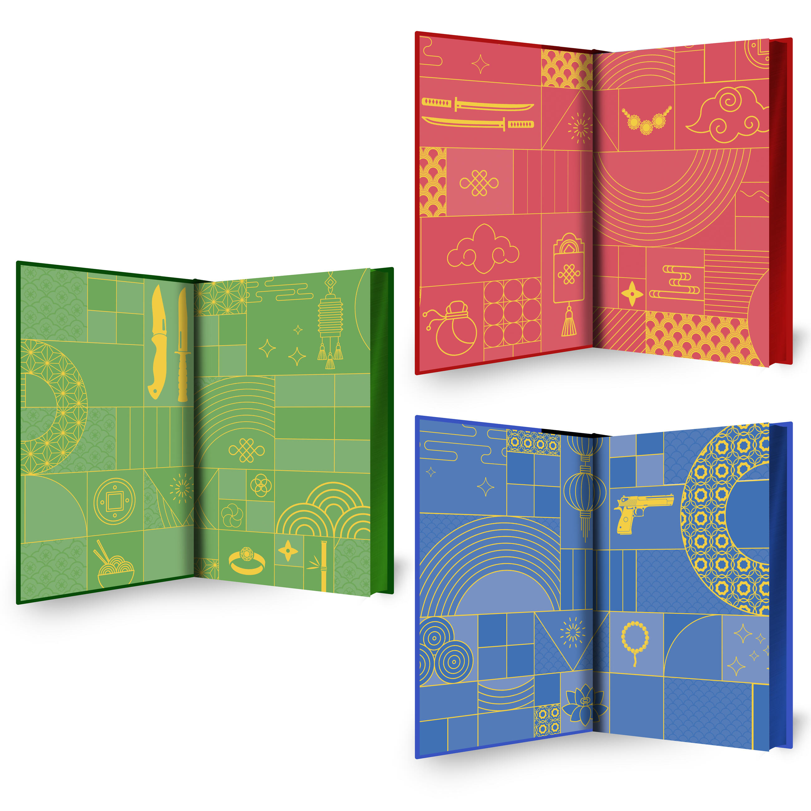 - Brand-new foil-stamped fabric covers